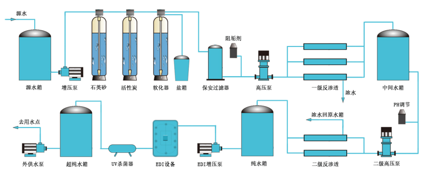 產水和回水循環(huán)運行,降低系統死角,避免微生物滋生。